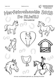 - Stuur je kleurplaat vóór zaterdag 18 oktober op naar De RIJeRIJ of doe deze door onze brievenbus (Mommersstraat 8, 4741SE Hoeven).